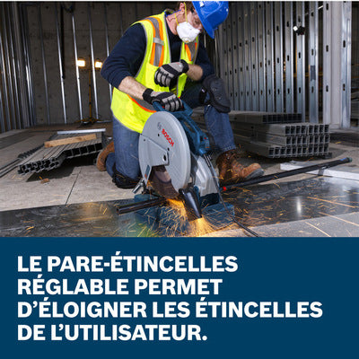 The Bosch GCO15-14 14 In. Abrasive Cut-Off Machine provides a large cutting capacity and 3-position adjustable fence with miter angle adjustment that allow for quick and accurate cuts from 0-45º left. The powerful 15 Amp motor provides a no-load speed up to 4100 RPM, allowing for faster, easier cuts and heightened productivity, while an adjustable spark guard helps control the direction of sparks produced by the cut-off machine. Its ergonomic design and moderate weight, about 31 Lbs., provides for comfortable, ambidextrous usage. When not in use, the head collapses for easy transport.