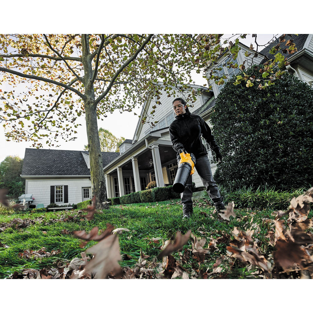 Power through your work with the 60V MAX* FLEXVOLT Brushless Cordless Handheld Axial Blower. This cordless axial blower produces up to 600 cfm of air volume and 125 mph, along with a variable-speed trigger and speed lock so you can control the blower output. The high-efficiency brushless motor provides high power and helps extend runtime. It is also part of the 60V MAX* FLEXVOLT battery system of high-powered products. Battery Charger Sold Separately