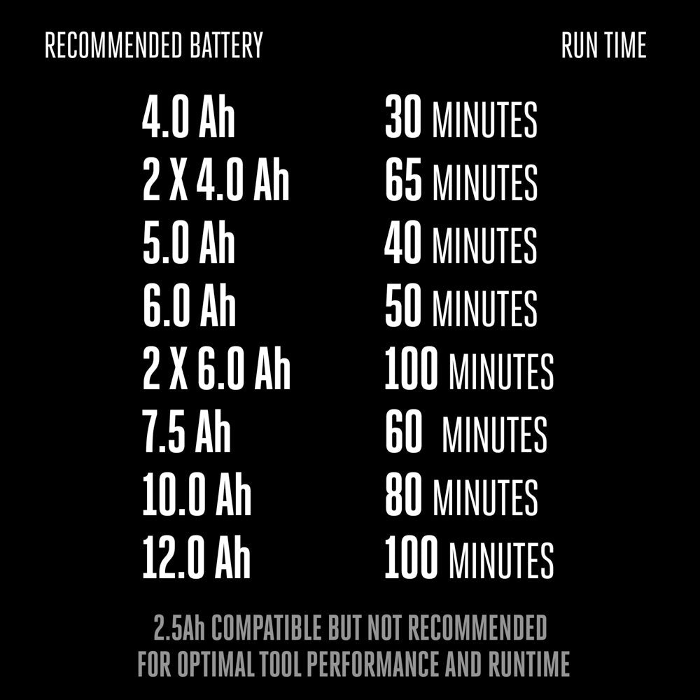 - Up to 60 minutes of runtime on a single charge with the recommended 56V 7.5Ah ARC Lithium™ battery
