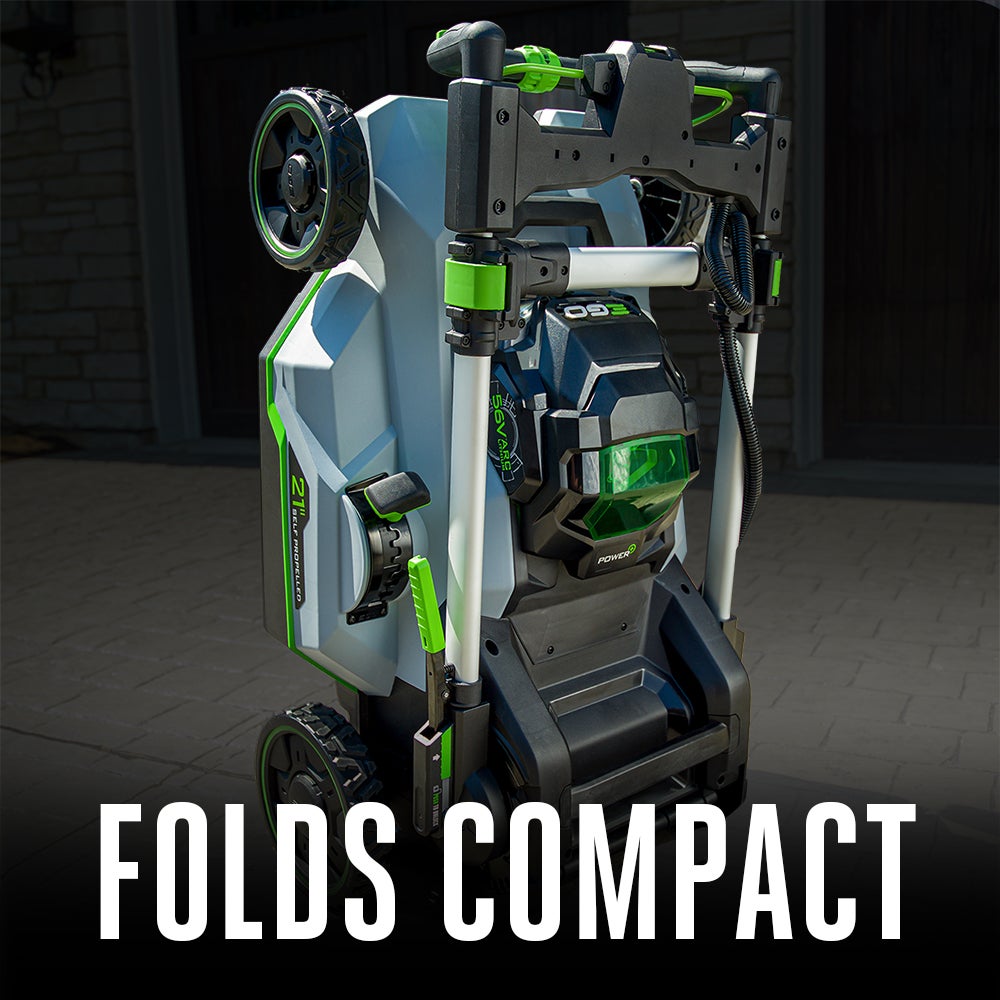 The EGO POWER+ 21" Select Cut Self-Propelled Mower delivers up to 7.0 foot-pounds of torque for performance that exceeds the power of gas. The Select Cut™ Multi-Blade Cutting System is equipped with three interchangeable lower blades: the Mulching Blade, High Lift Bagging Blade, and Extended Runtime Blade. The Mulching Blade comes installed on the lawn mower and is ideal for weekly mulching, giving you the mulching quality expected from a high-end gas lawn mower. The High Lift Bagging Blade provides extra suction ideal for bagging, leaving your yard free of clippings. The Extended Runtime Blade provides an optimal balance of cut quality and runtime for all around performance. All three blades can be used interchangeably based on your desired cut. The Upper Blade is used in combination with the lower blade chosen to slice the grass into fine fragments, greatly enhancing cutting performance with all grass types. EGO Touch Drive™ self-propelled technology puts complete control of the self-propel system in the palm of your hands by using pressure to engage the system. Easily control the variable speed with a dial positioned at your fingertips for safe and convenient operation. The Select Cut™ cordless lawn mower harnesses the power of the industry’s most advanced 56V ARC Lithium™ batteries to deliver up to 60 minutes of runtime on a single charge with the recommended 7.5Ah battery. Three-in-one functionality delivers your choice of mulching, side discharge, or bagging your grass clippings; an easy-access two-bushel grass collection bag is included. This electric lawn mower includes bright LED lights for added visibility when mowing at dawn or dusk, and it folds for compact storage between cuts. Experience Power Beyond Belief™ with the EGO POWER+ 21" Select Cut™ Self-Propelled Lawn Mower.