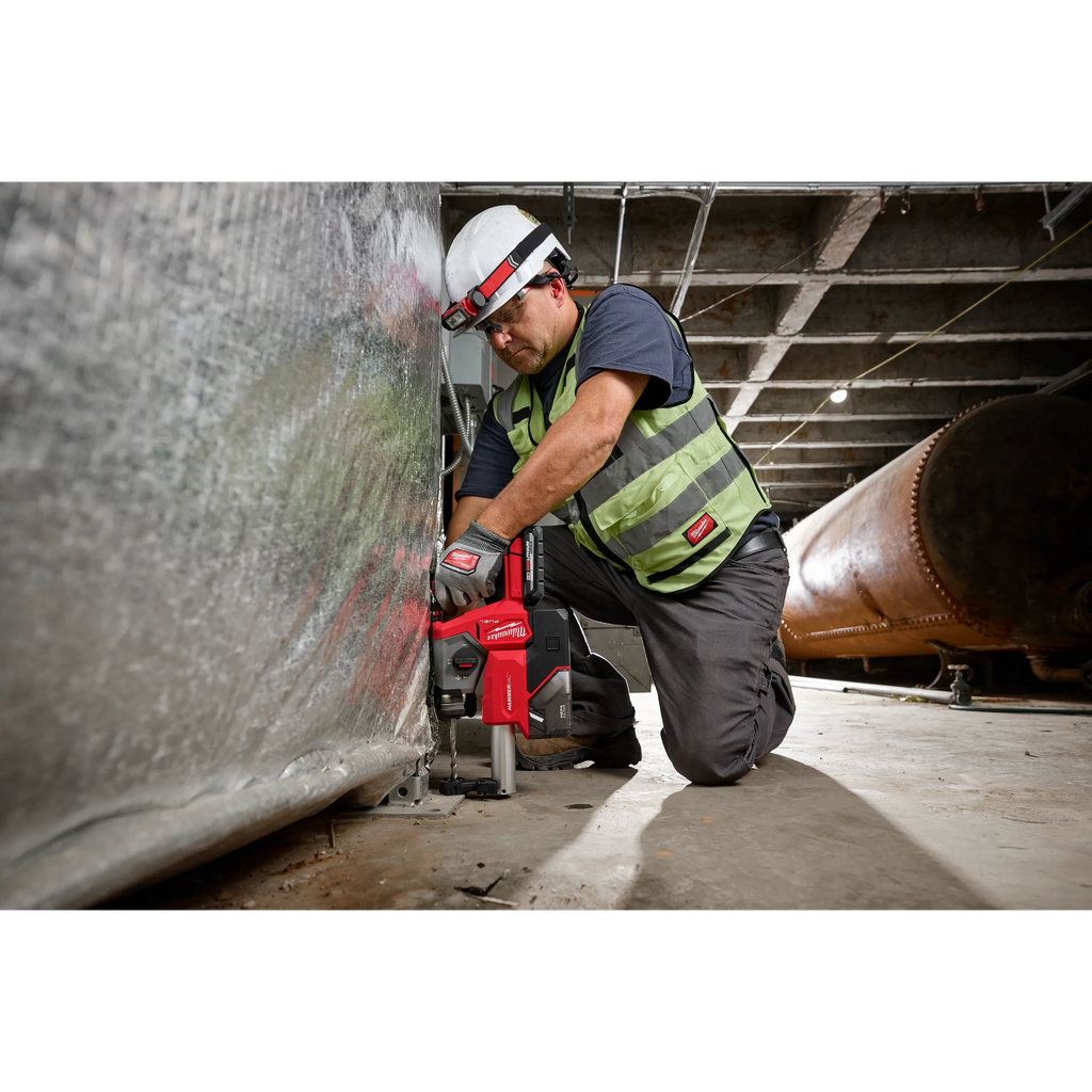 Our M18 FUEL™ 5/8” SDS Plus Rotary Hammer delivers maximum power and productivity. This hammer delivers the Fastest 3/8” Drilling In Its Class, has the Most Versatile, Compact Design, and delivers Up to (89) ¼” x 2" holes per charge when paired with the M18™ REDLITHIUM™ High Output CP3.0 Battery. Our POWERSTATE™ Brushless Motor delivers 1.3 ft-lbs of impact energy, 1,400 RPM, and 5,000 BPM, enhancing portable productivity. REDLINK PLUS™ Intelligence ensures maximum rotary hammer performance and protects it from overload, overheating, and over-discharge. At only 10.4” long and 3.8 lbs, this hammer has the power to complete the toughest concrete applications, for its size. For enhanced safety, this hammer includes an AVS Anti-Vibration System for maximum comfort and AUTOSTOP™ Enhanced Kickback Control to reduce over-rotation. For maximum versatility, shadowless lighting provides increased visibility and an integrated hang hook for functional storage and convenience. Additionally, this hammer features a 3-mode operation – Hammer Drill, Drill Only, and Chisel Modes for light material removal.