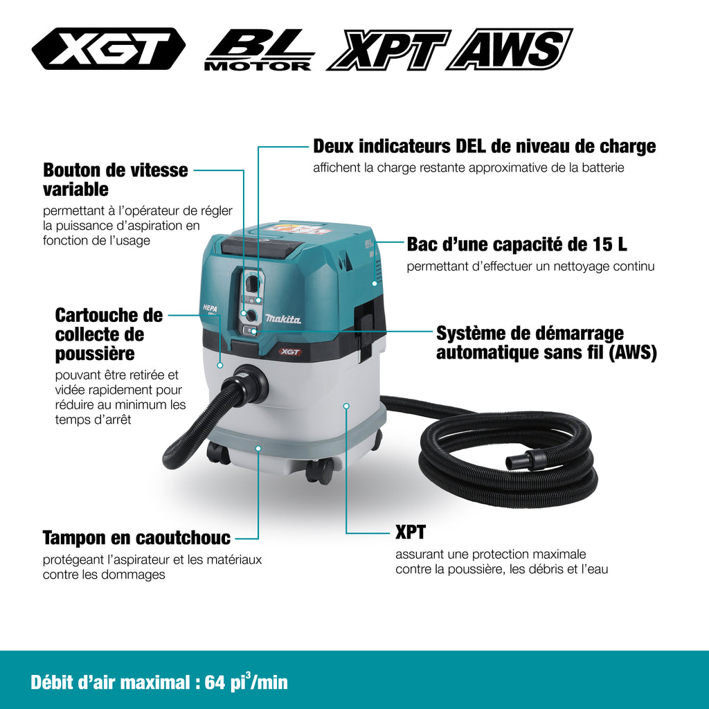 - AWS (Auto-Start Wireless System) uses Bluetooth technology to communicate between tool and vacuum and enable wireless control when used with Makita AWS cordless tool