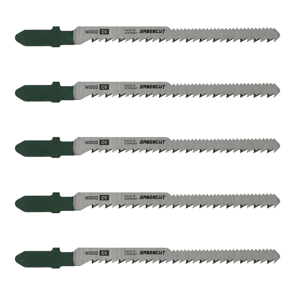 This German-made Sabercut Jigsaw blade is designed for professional contractors, offering two cutting edges in one blade. It is ideal for scrolling, forward, and backward cuts on wood. Save up to 25% with every cut